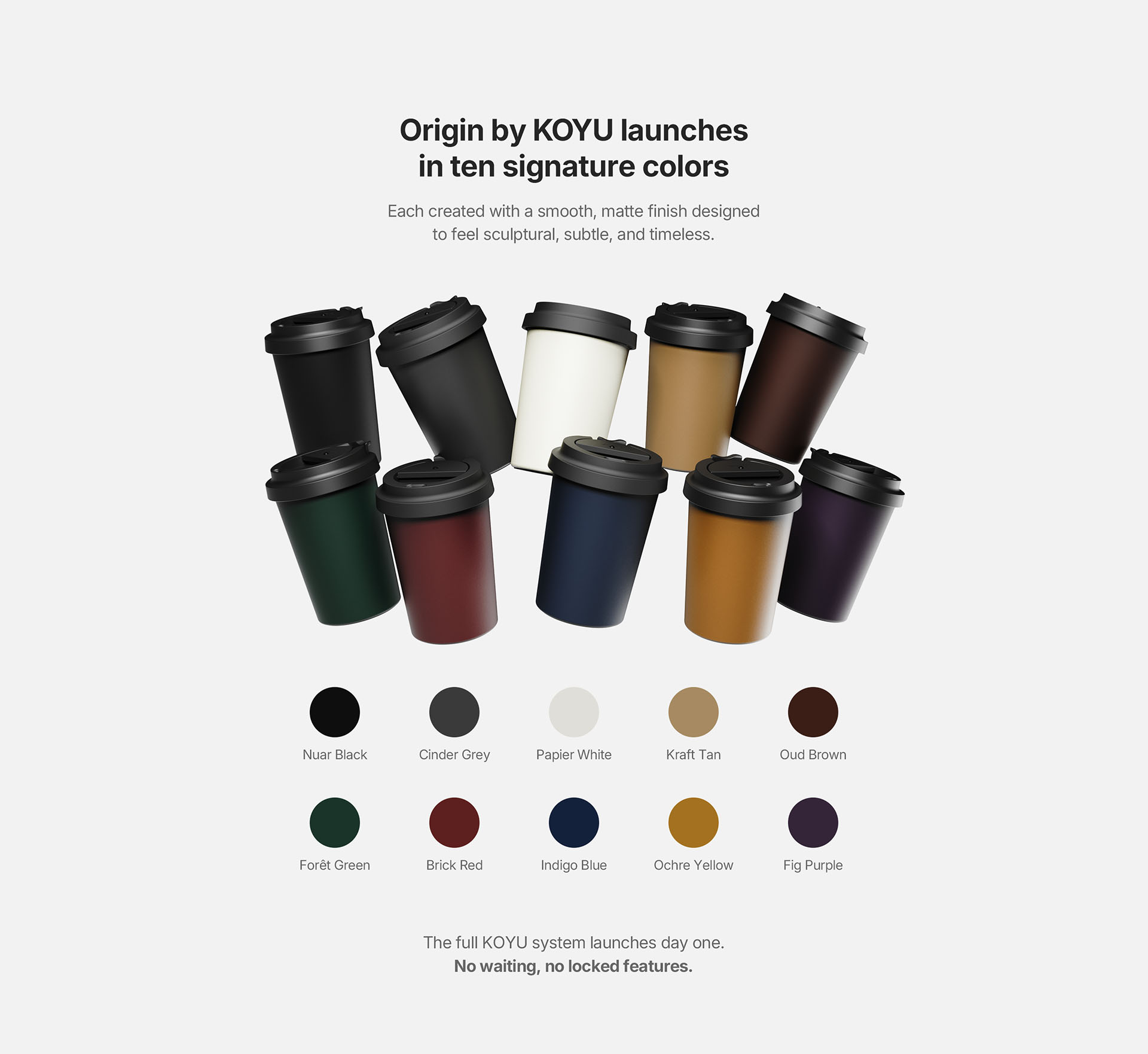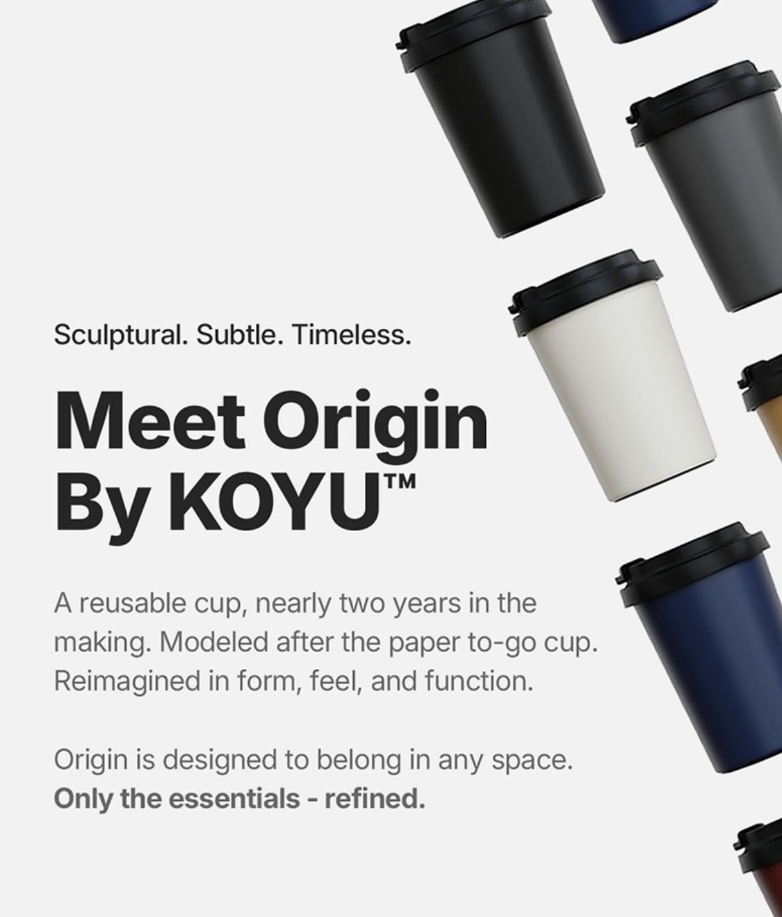 This cup is going places, because its going with you! Koyu makes a statement as bold as your coffee, and with just about as many flavors of expression!